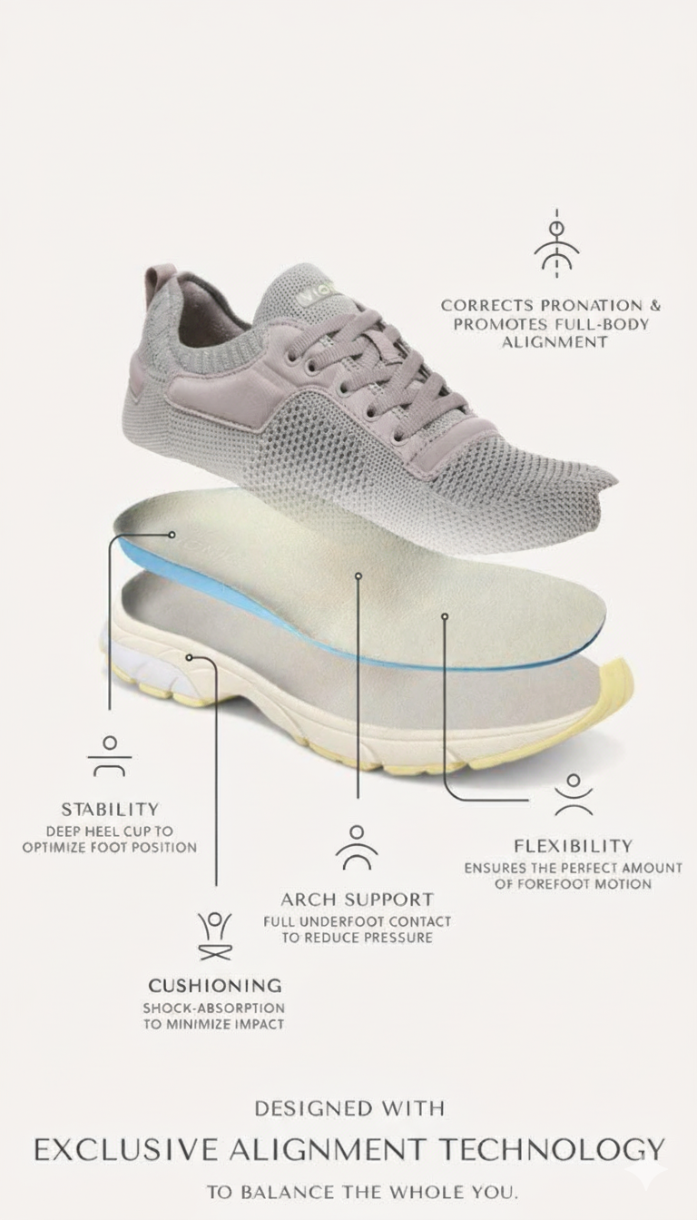 Built with exclusive balance alignment technology, AlignMotion Pro corrects posture and enhances motion fluidity. Its deep heel cup stabilizes your foot, while arch support and flexible cushioning reduce pressure during long hours of wear. Designed for full-body alignment, this sneaker redefines comfort with structure and precision.